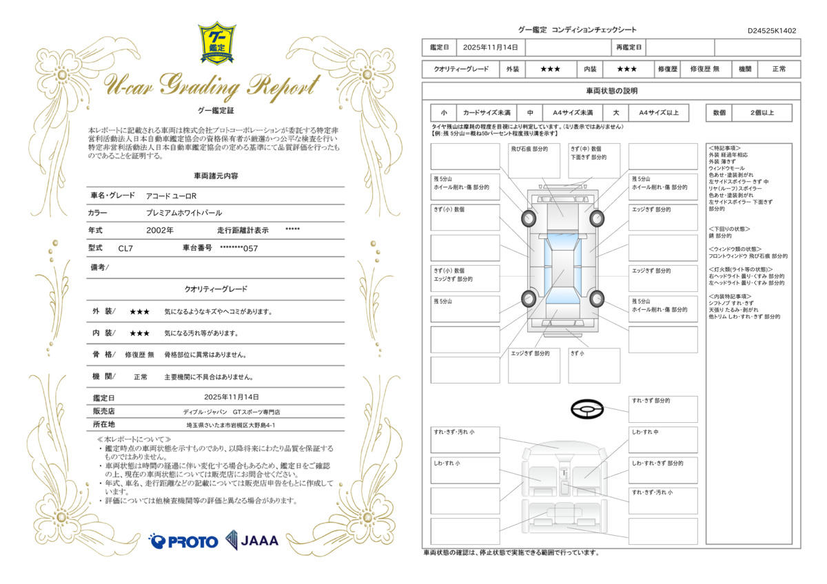 | 車両状態評価書 | ※クリックすると開きます![]() |