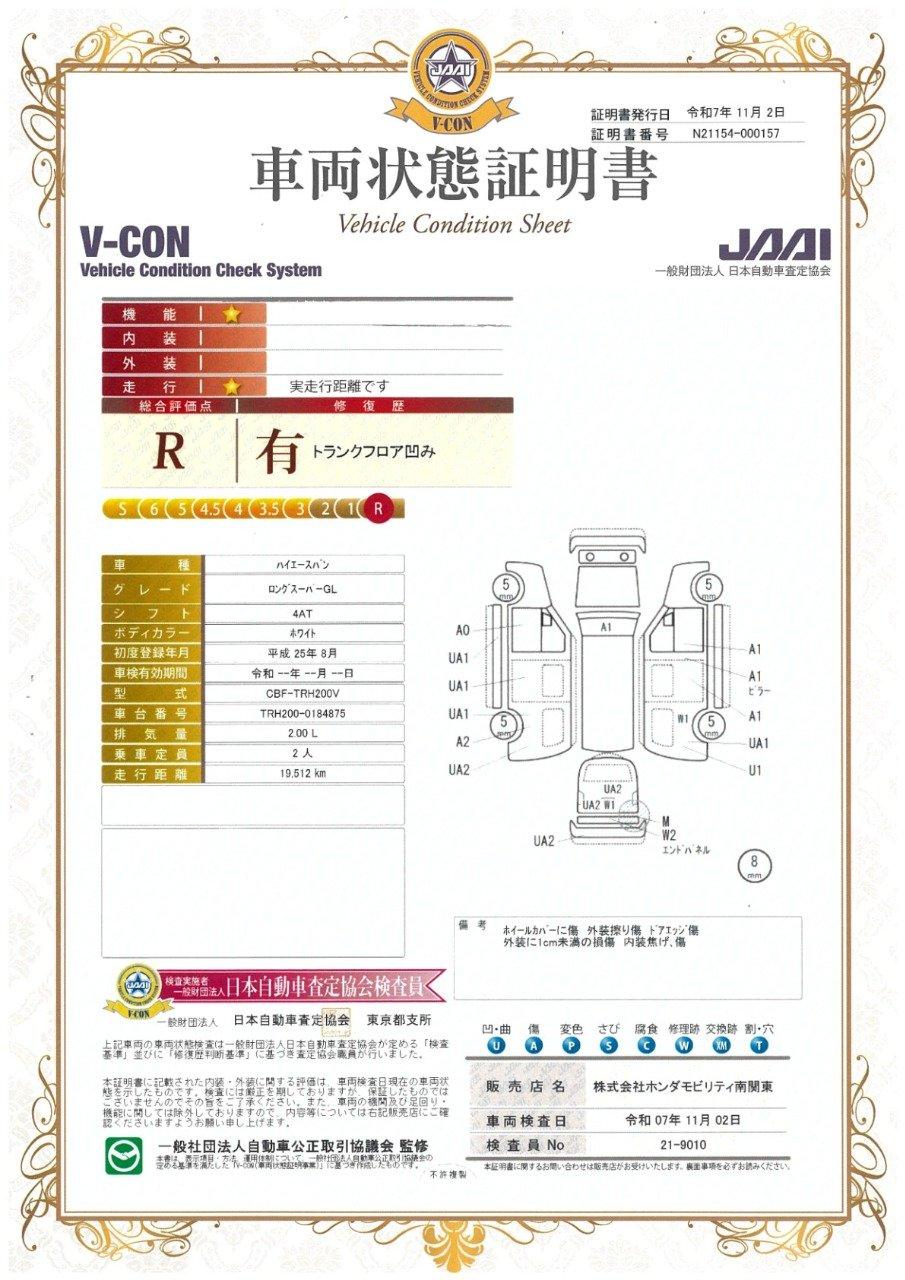 | 車両状態評価書 | ※クリックすると開きます![]() |
