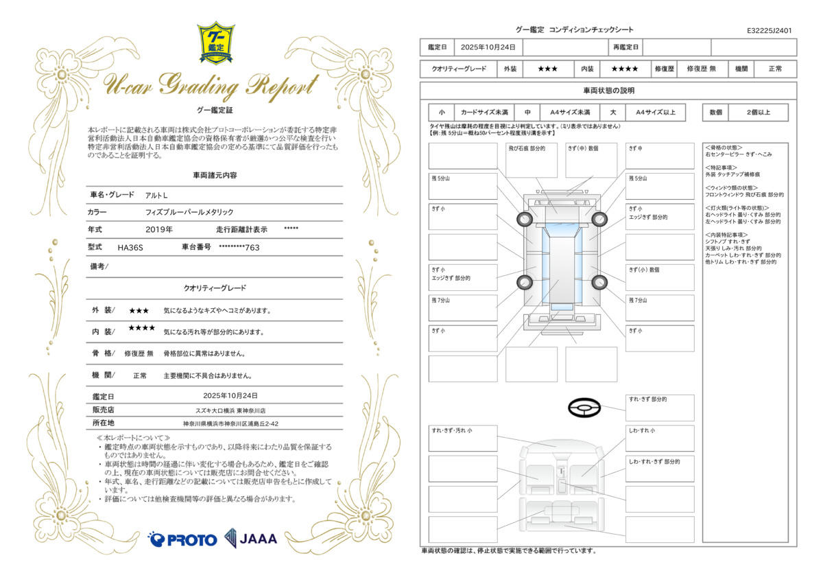 | 車両状態評価書 | ※クリックすると開きます![]() |