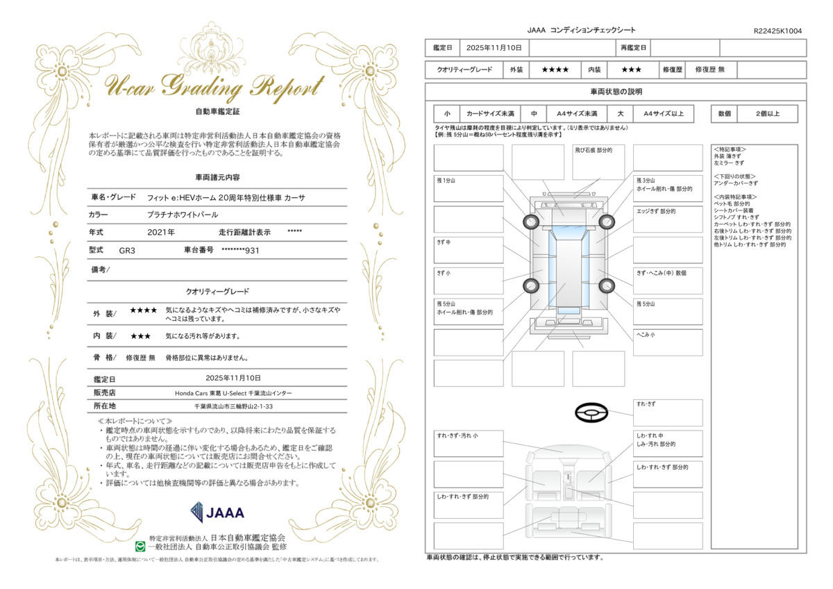 車両状態(フィット e:HEVホーム 20周年特別仕様車 カーサ)