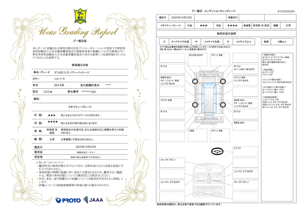 | 車両状態評価書 | ※クリックすると開きます![]() |