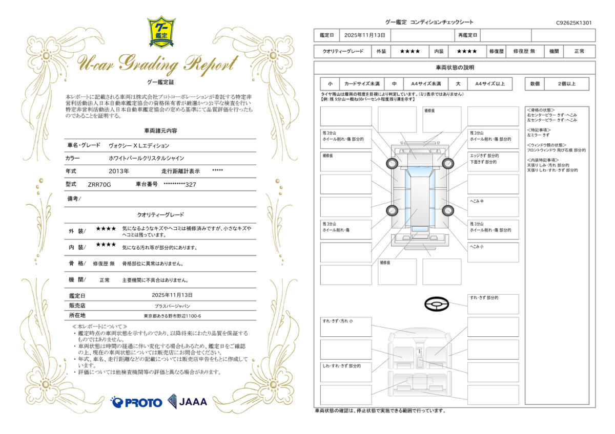 | 車両状態評価書 | ※クリックすると開きます![]() |
