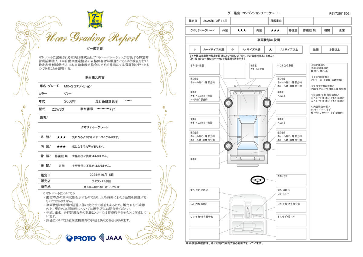 | 車両状態評価書 | ※クリックすると開きます![]() |