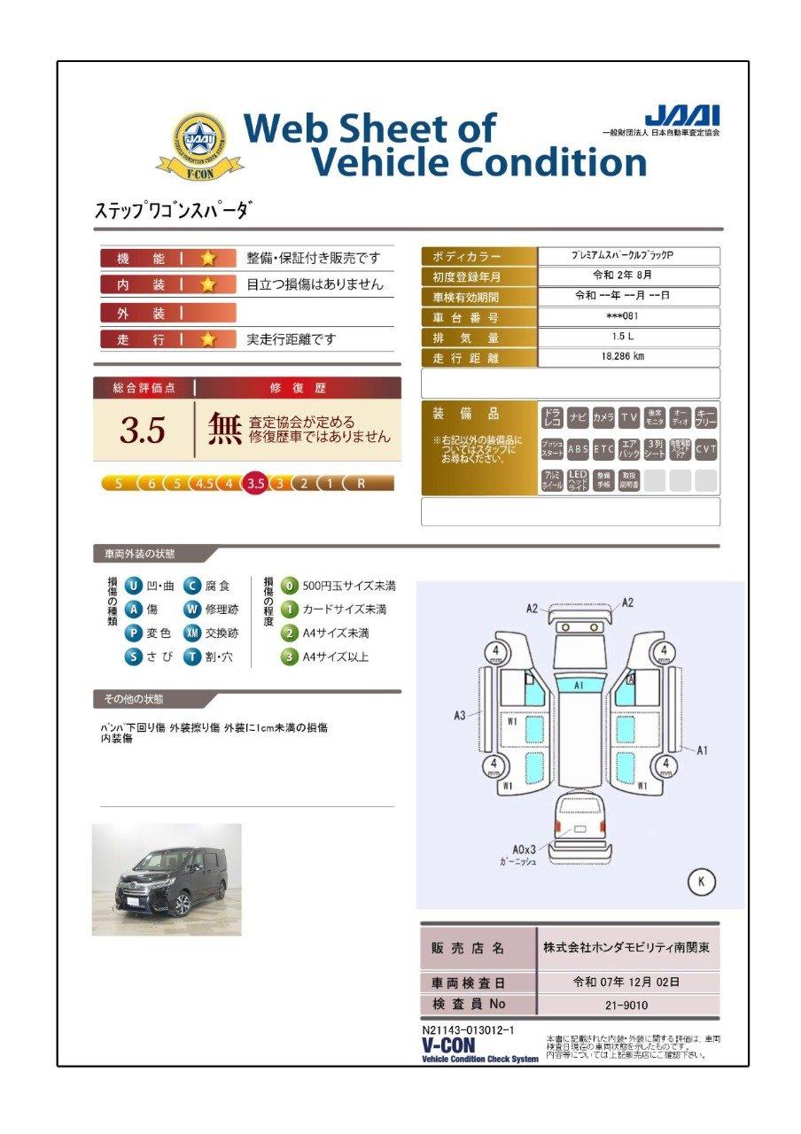車両状態(ステップワゴンスパーダ スパーダ ホンダセンシング)