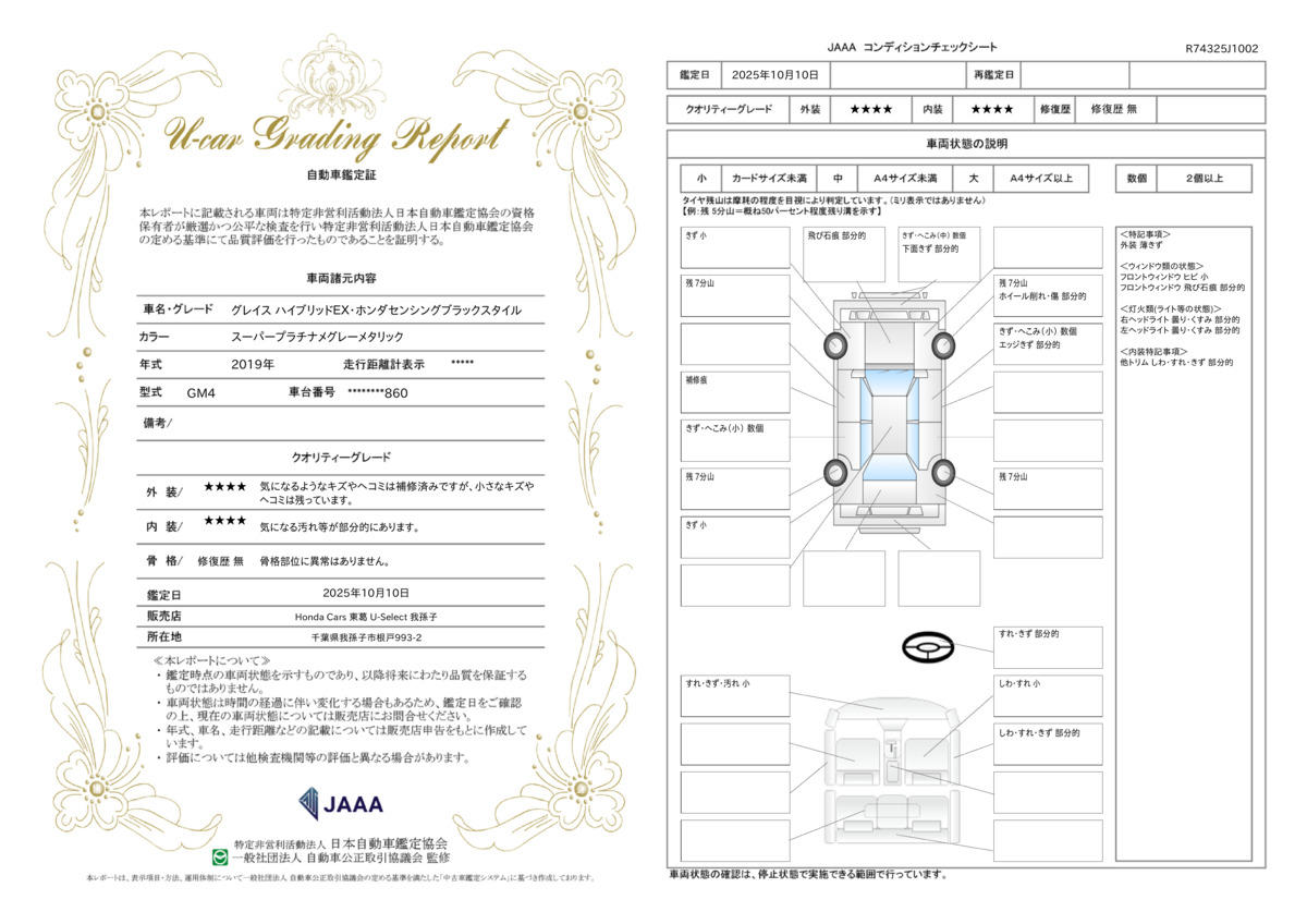 車両状態評価書 | ※クリックすると開きます![]() |