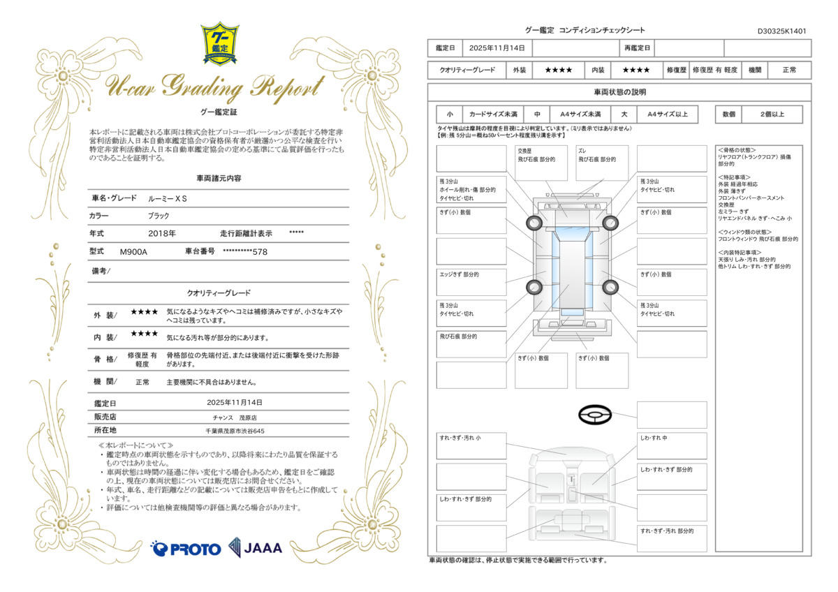 | 車両状態評価書 | ※クリックすると開きます![]() |