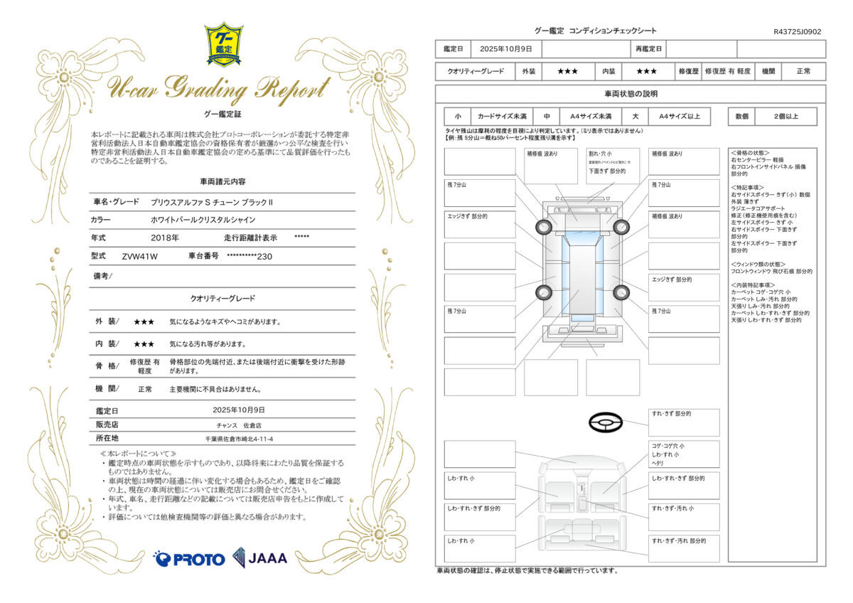 | 車両状態評価書 | ※クリックすると開きます![]() |