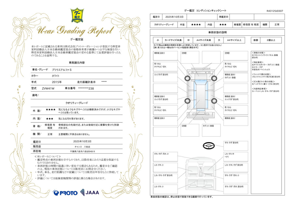 | 車両状態評価書 | ※クリックすると開きます![]() |