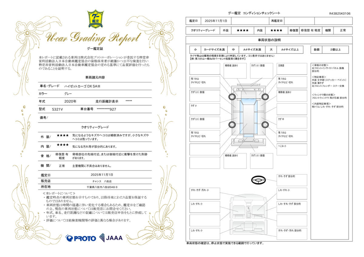 | 車両状態評価書 | ※クリックすると開きます![]() |