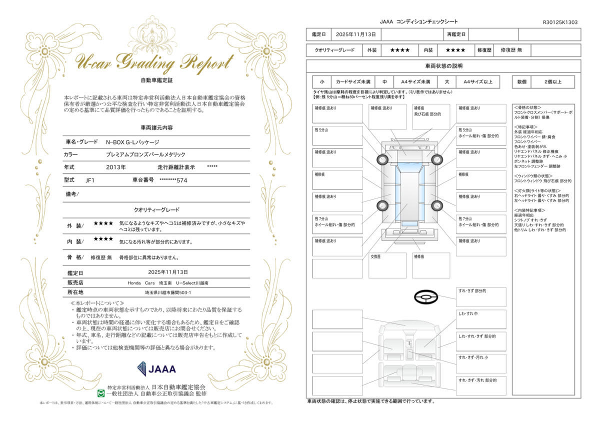 | 車両状態評価書 | ※クリックすると開きます![]() |