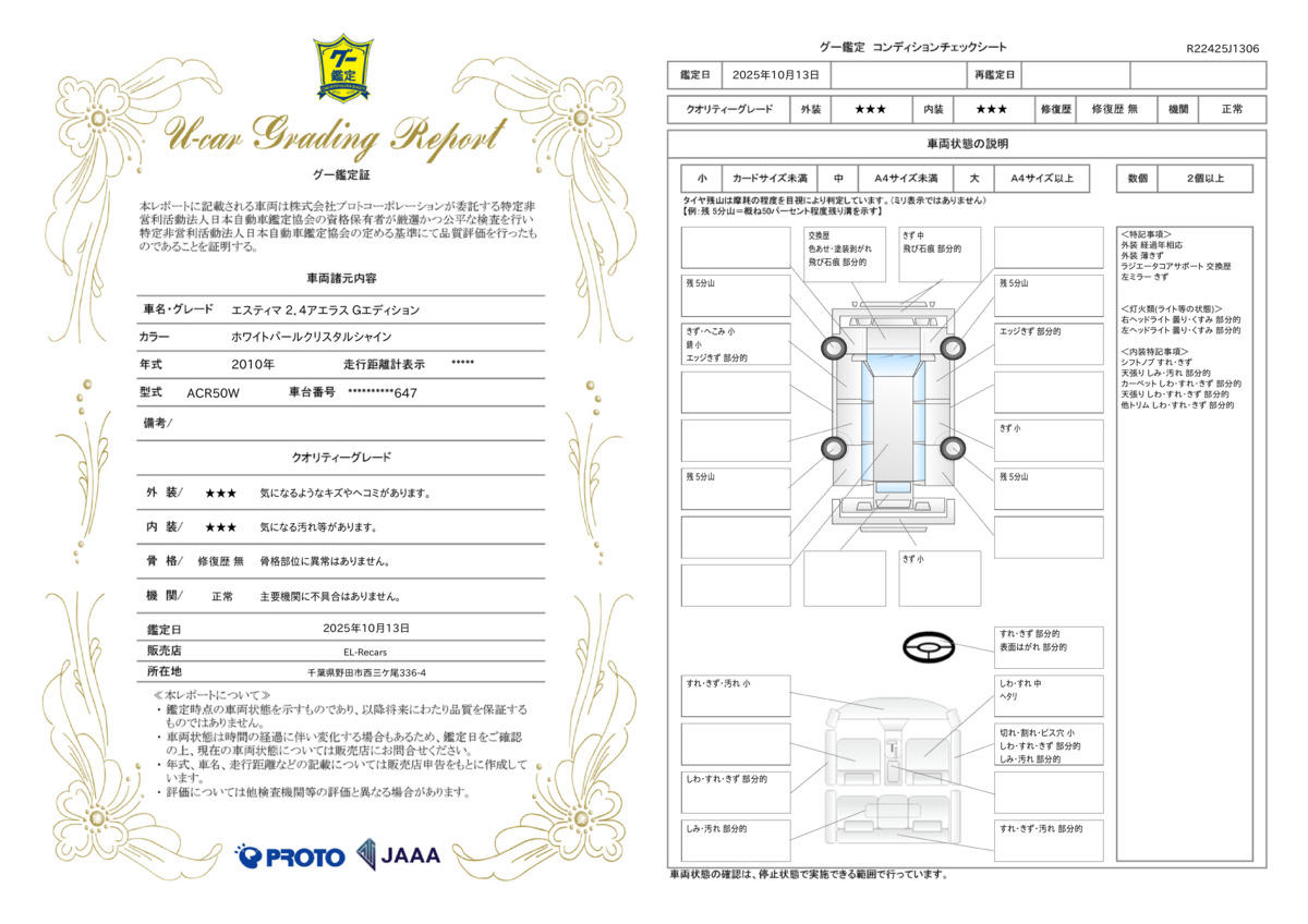 車両保証(エスティマ 2.4アエラス Gエディション:EL-Recars エルレカーズ )