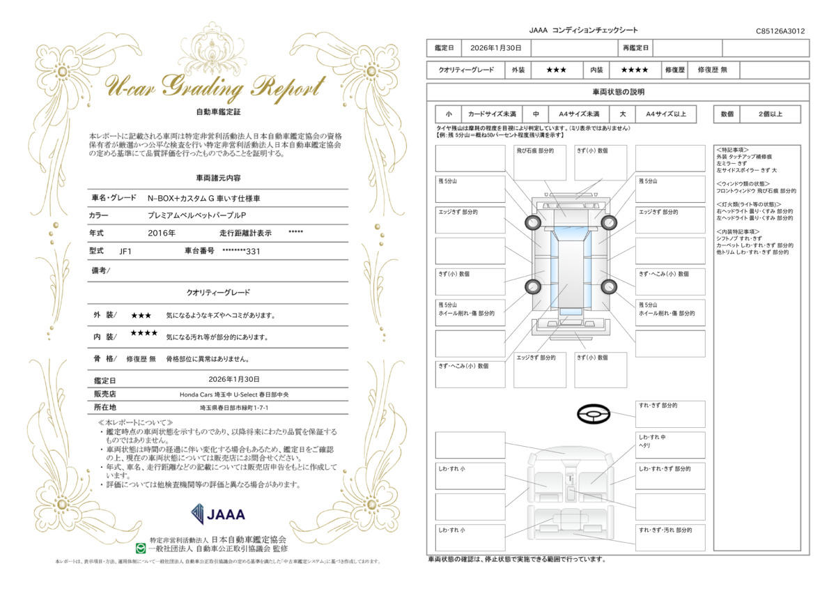 | 車両状態評価書 | ※クリックすると開きます![]() |