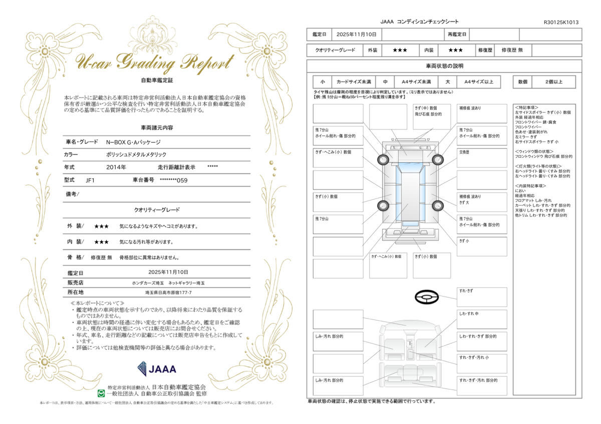 車両状態(N-BOXカスタム G・Aパッケージ)
