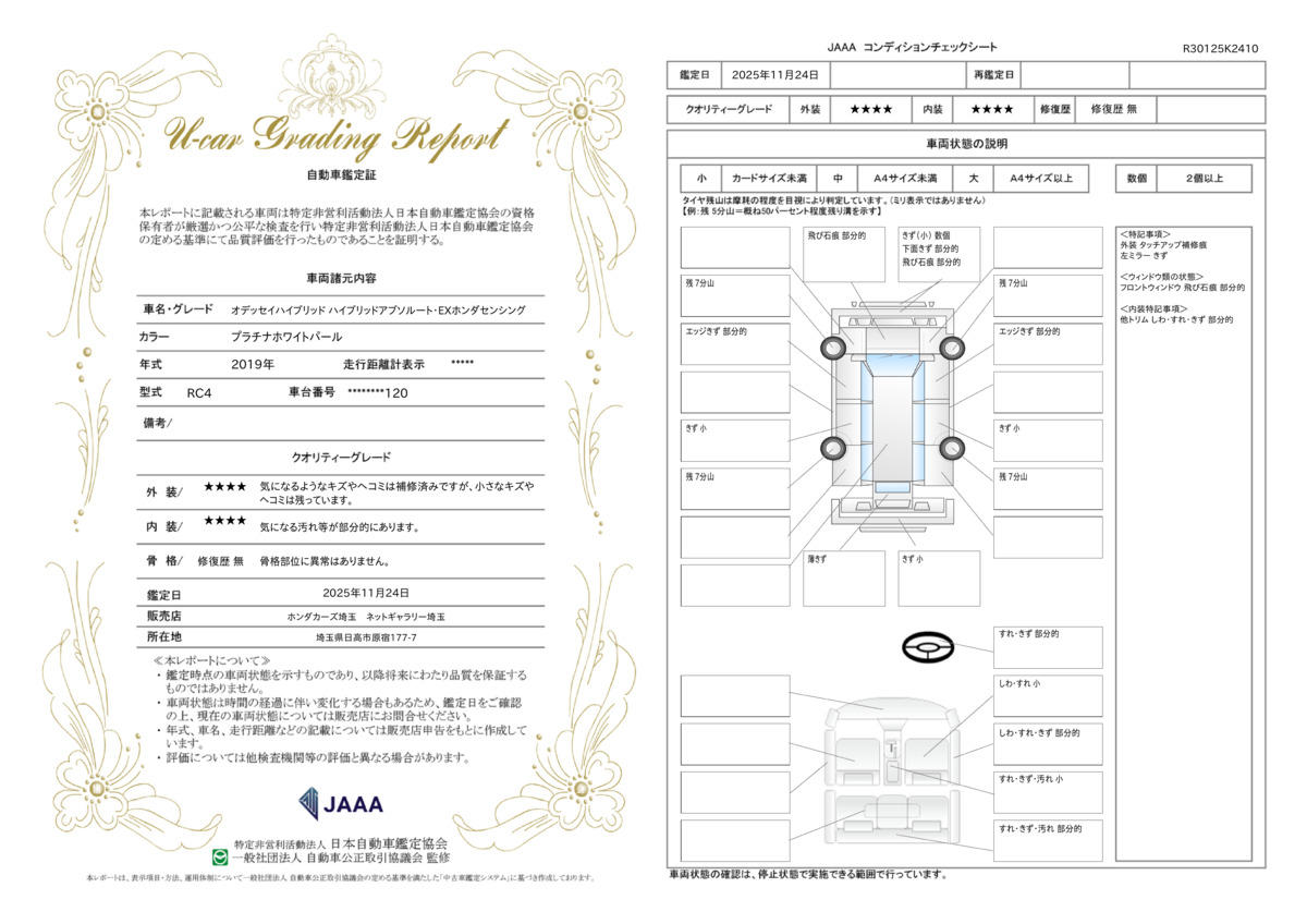 | 車両状態評価書 | ※クリックすると開きます![]() |
