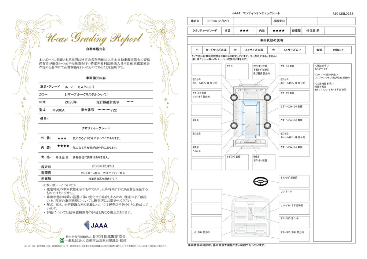| 車両状態評価書 | ※クリックすると開きます![]() |