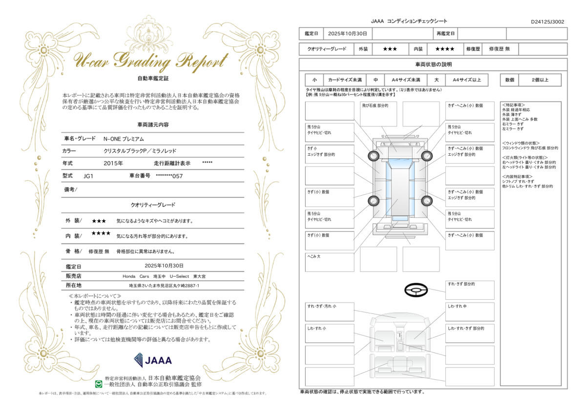 車両保証(N-ONE プレミアム:Honda Cars 埼玉中 東松山 U-Selectコーナー店)