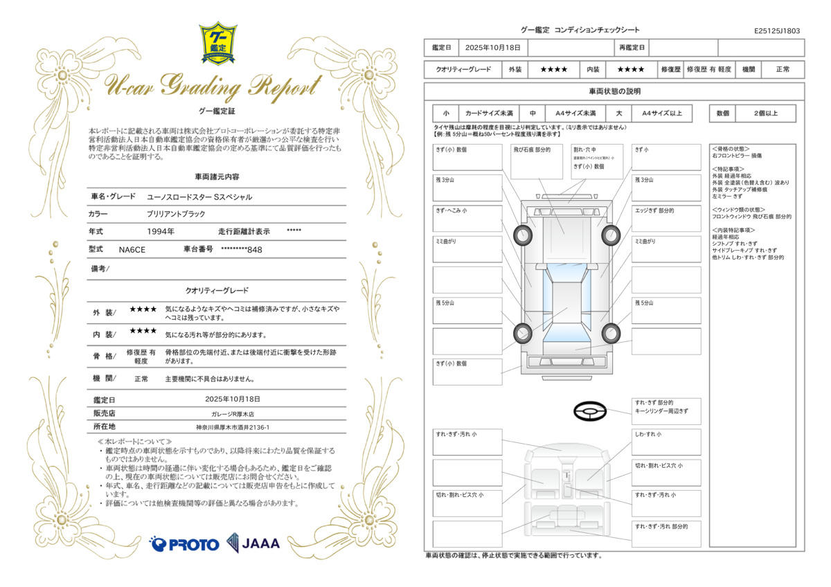 車両保証(ユーノスロードスター Sスペシャル:ガレージアール厚木店)