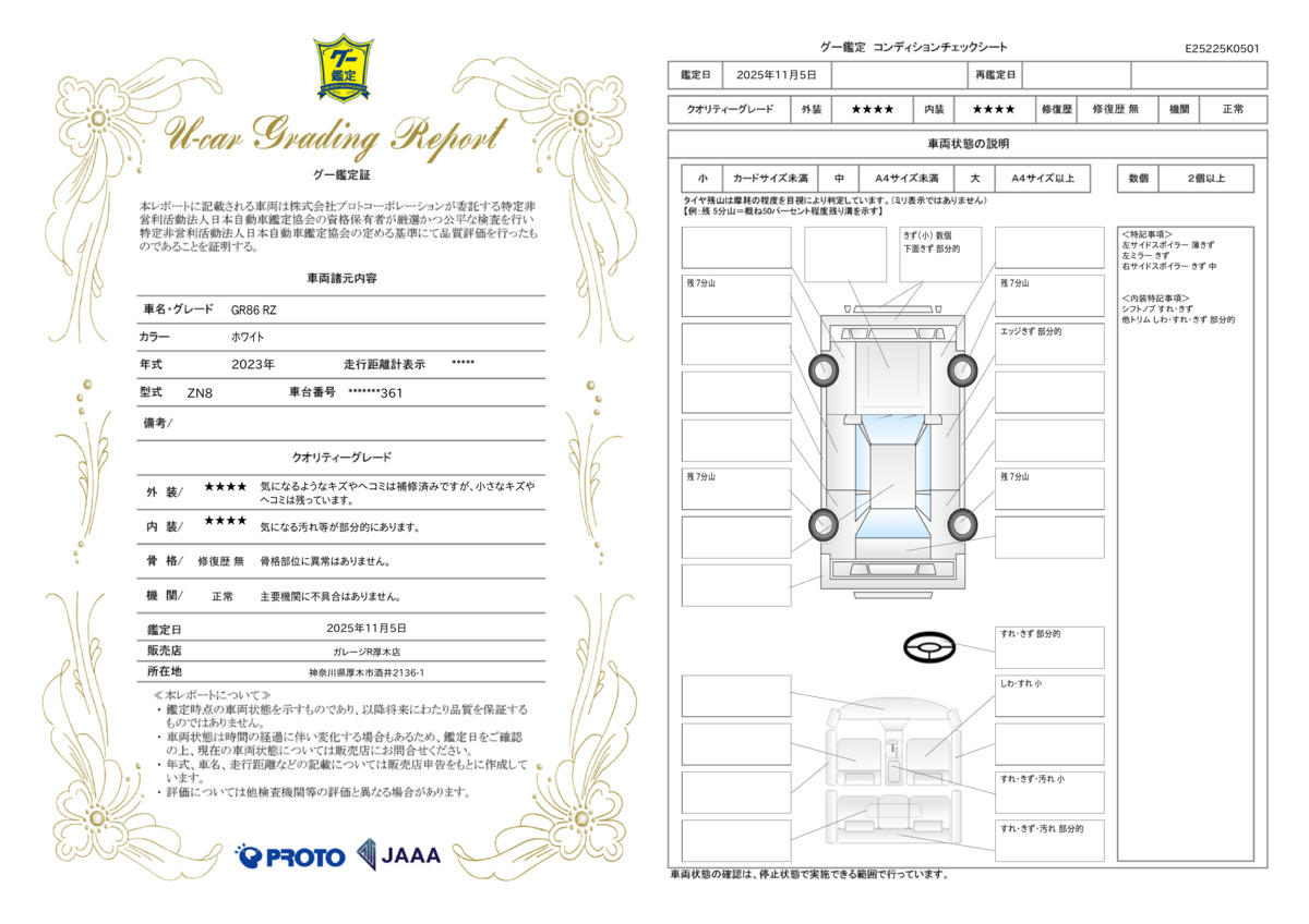 車両保証(GR86 RZ:ガレージアール厚木店)