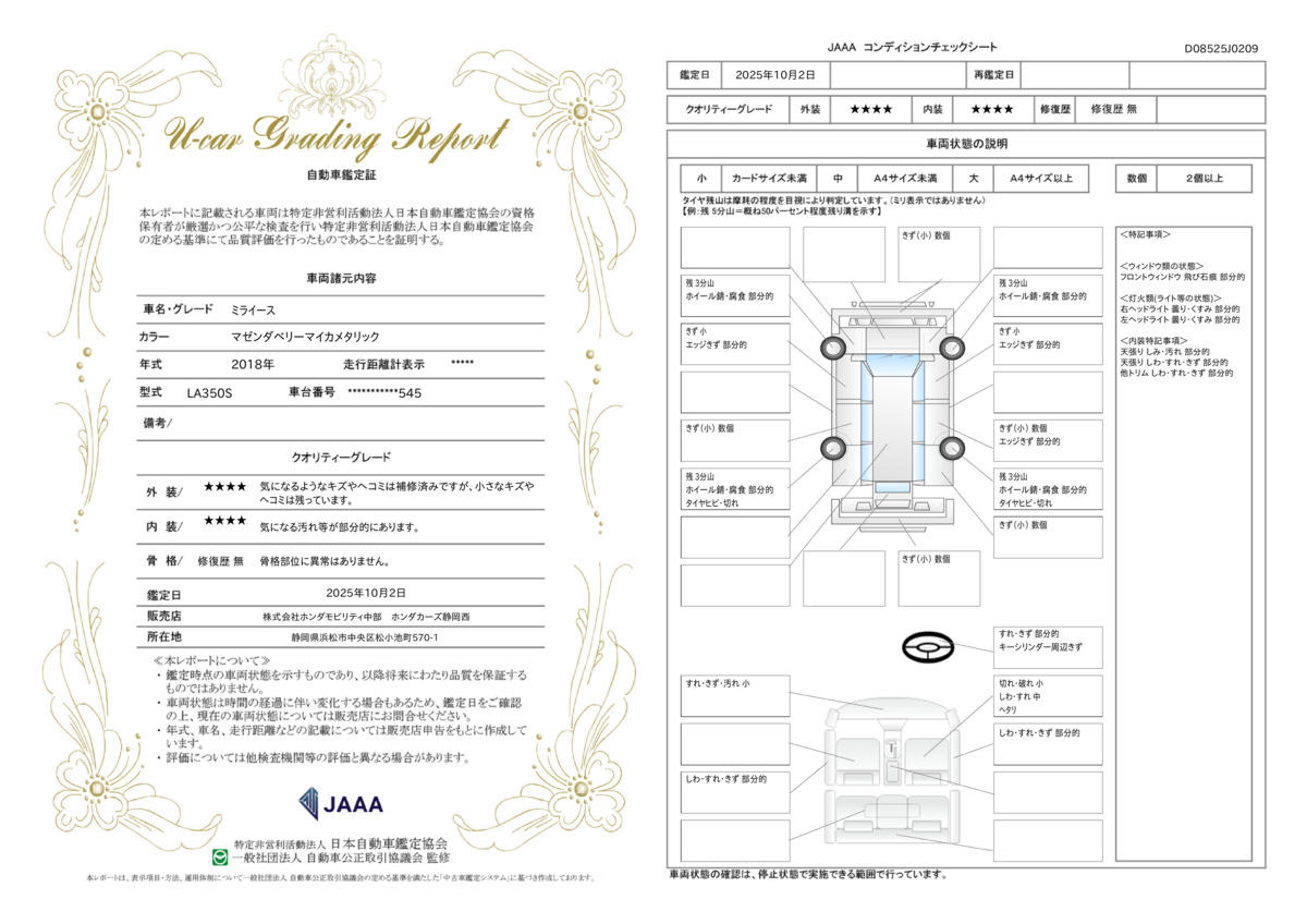| 車両状態評価書 | ※クリックすると開きます![]() |