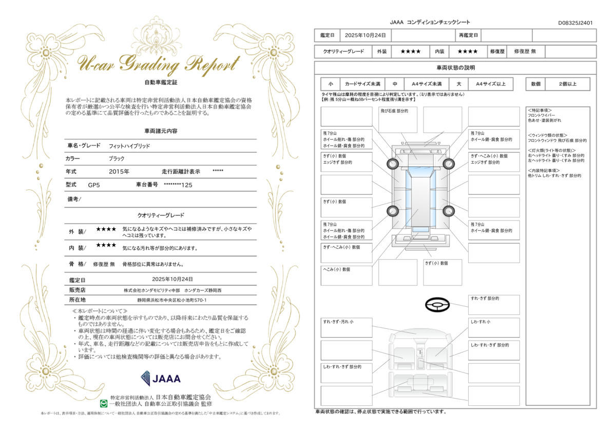 | 車両状態評価書 | ※クリックすると開きます![]() |