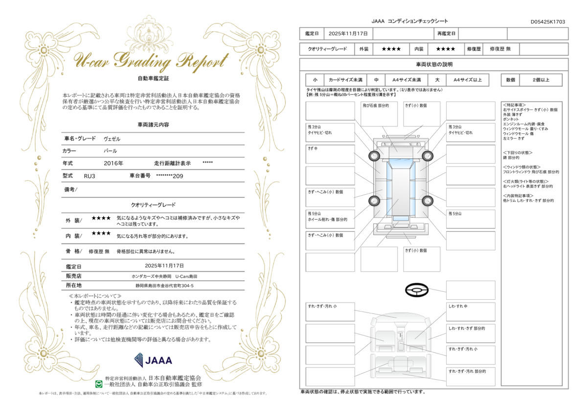 車両保証(ヴェゼル ハイブリッドRS・ホンダセンシング:ホンダカーズ中央静岡 U-Cars島田)