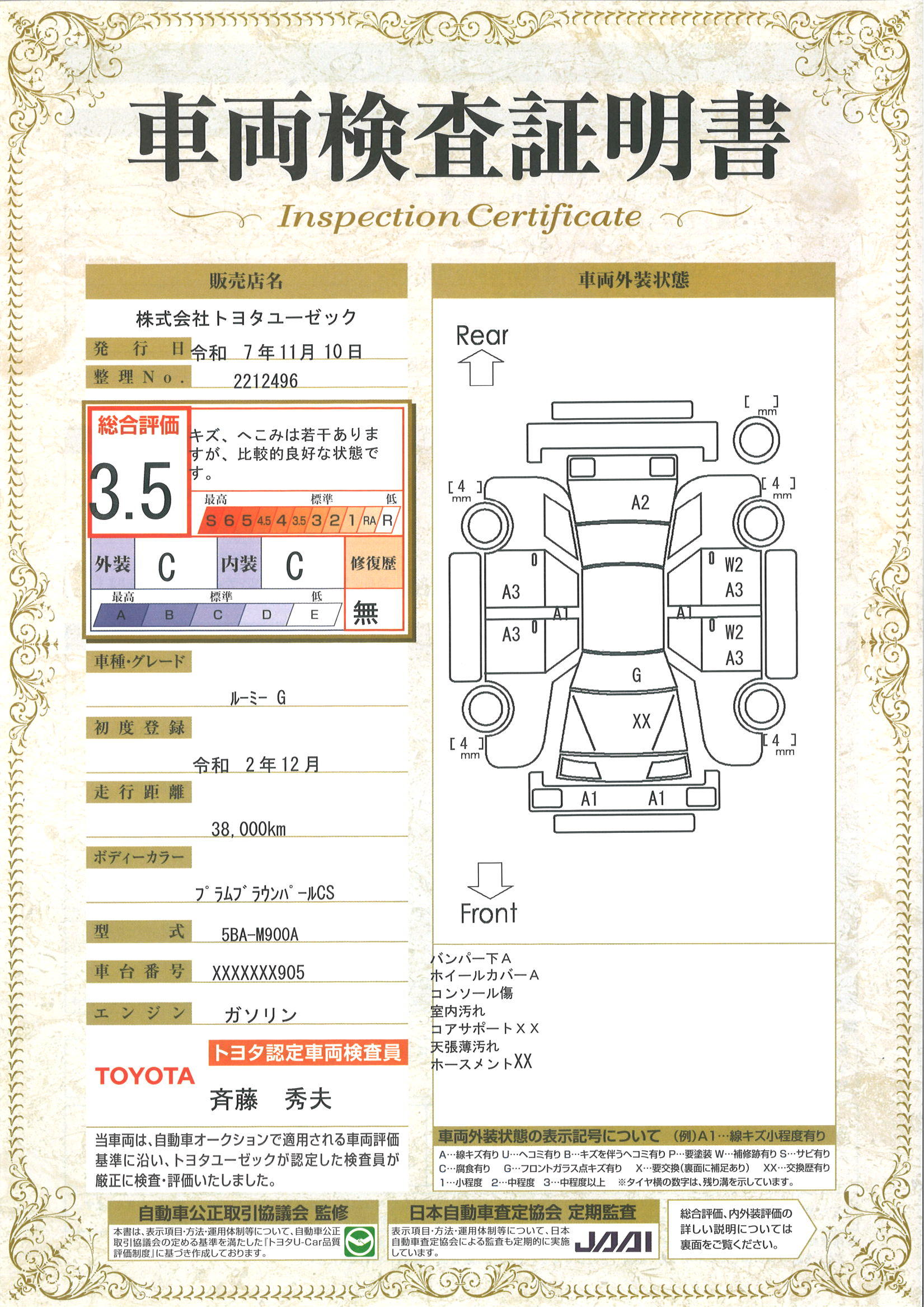 | 車両状態評価書 | ※クリックすると開きます![]() |