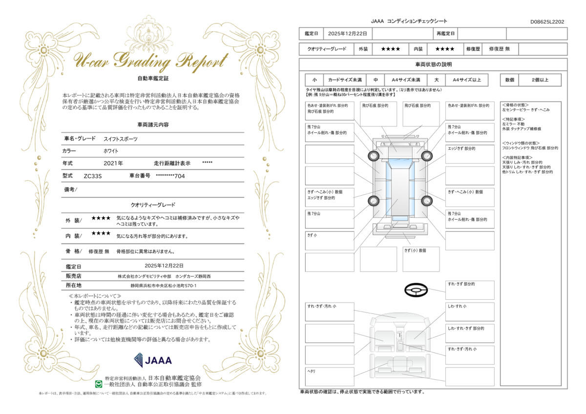 車両保証(スイフトスポーツ ベースグレード:Honda Cars 静岡西 浜北インター店)