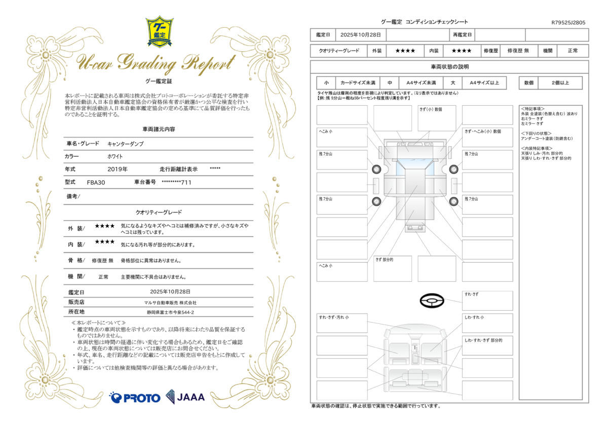 | 車両状態評価書 | ※クリックすると開きます![]() |