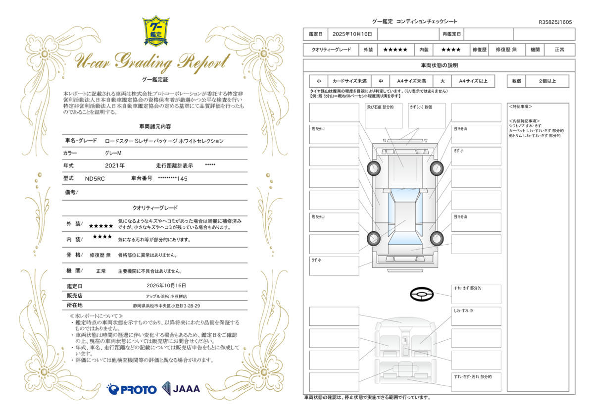 車両状態評価書 | ※クリックすると開きます![]() |