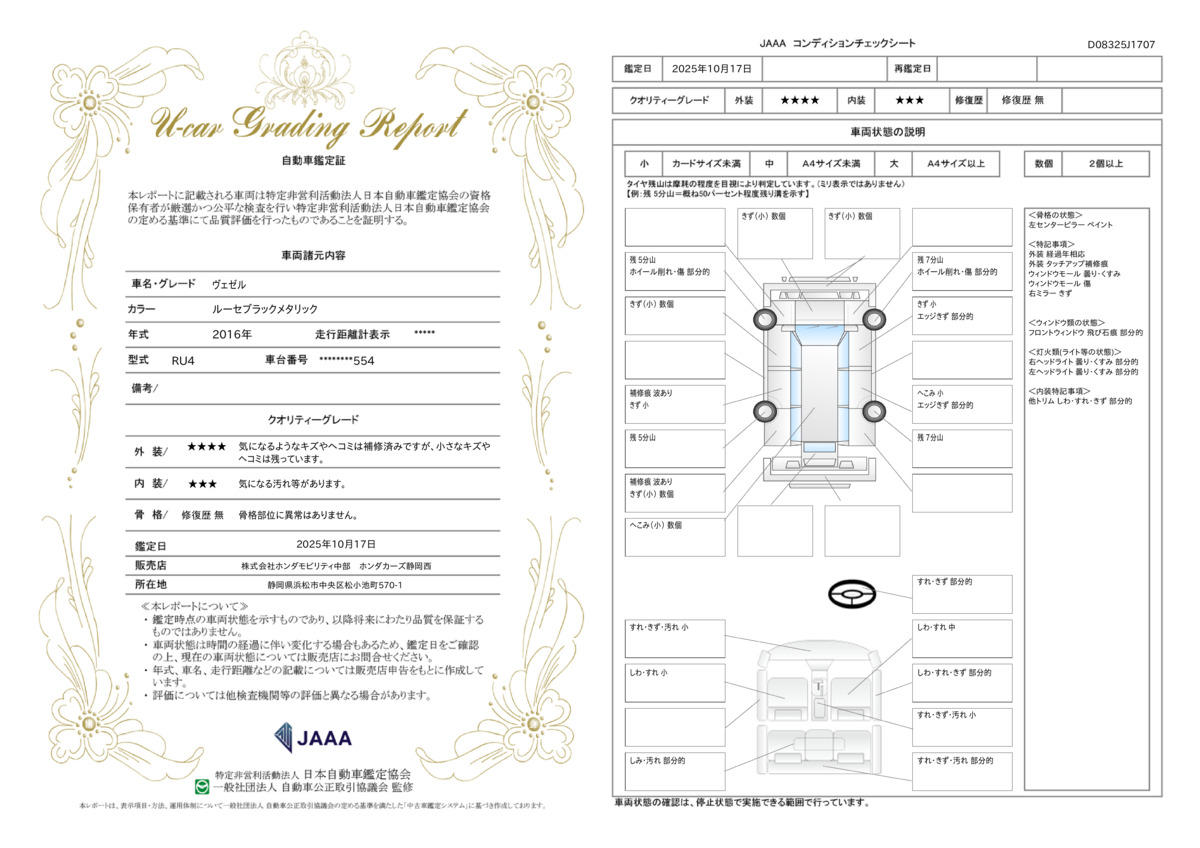 | 車両状態評価書 | ※クリックすると開きます![]() |