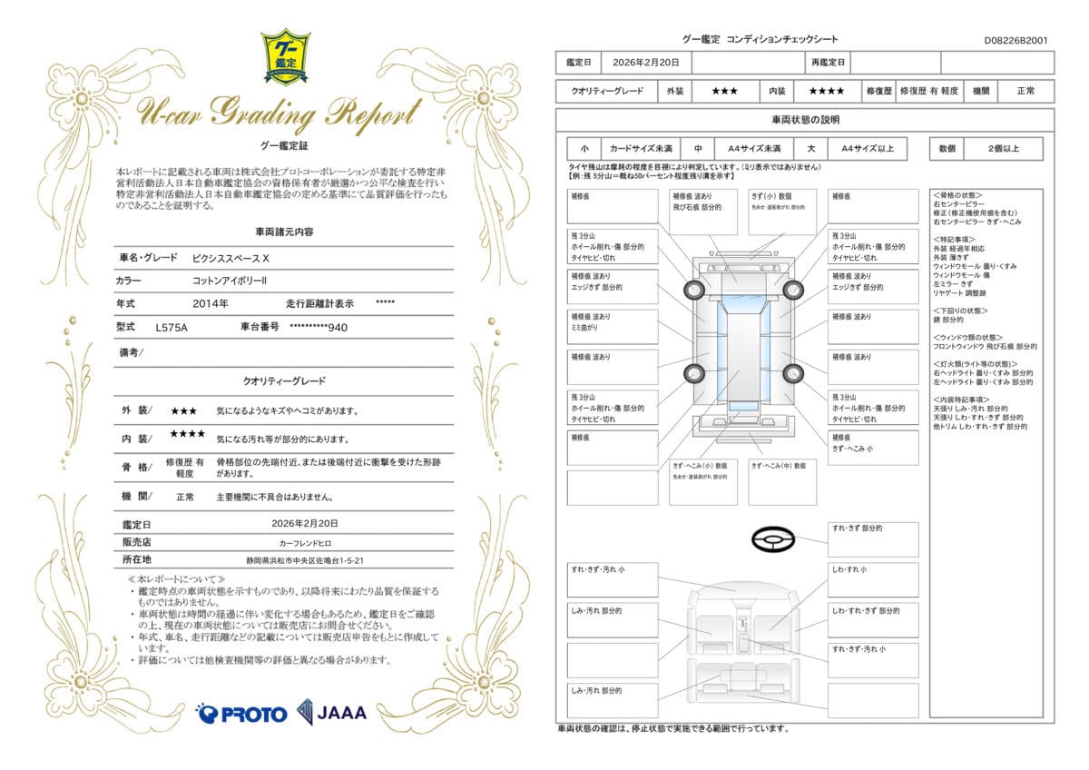 | 車両状態評価書 | ※クリックすると開きます![]() |