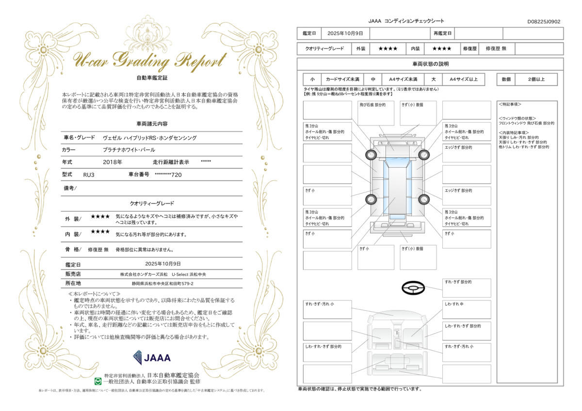 | 車両状態評価書 | ※クリックすると開きます![]() |