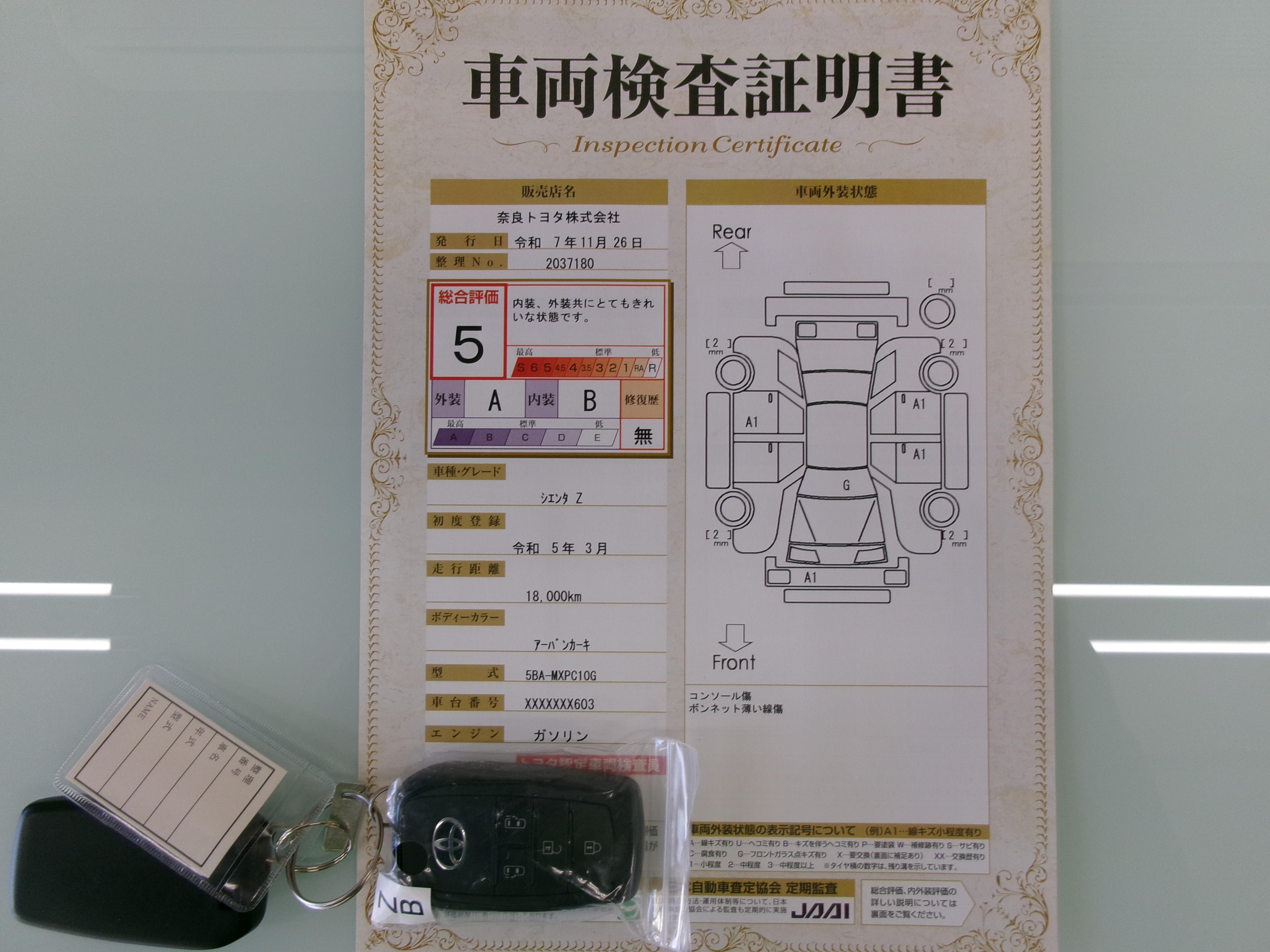 車両保証(シエンタ Z:奈良トヨタ株式会社 五條店)