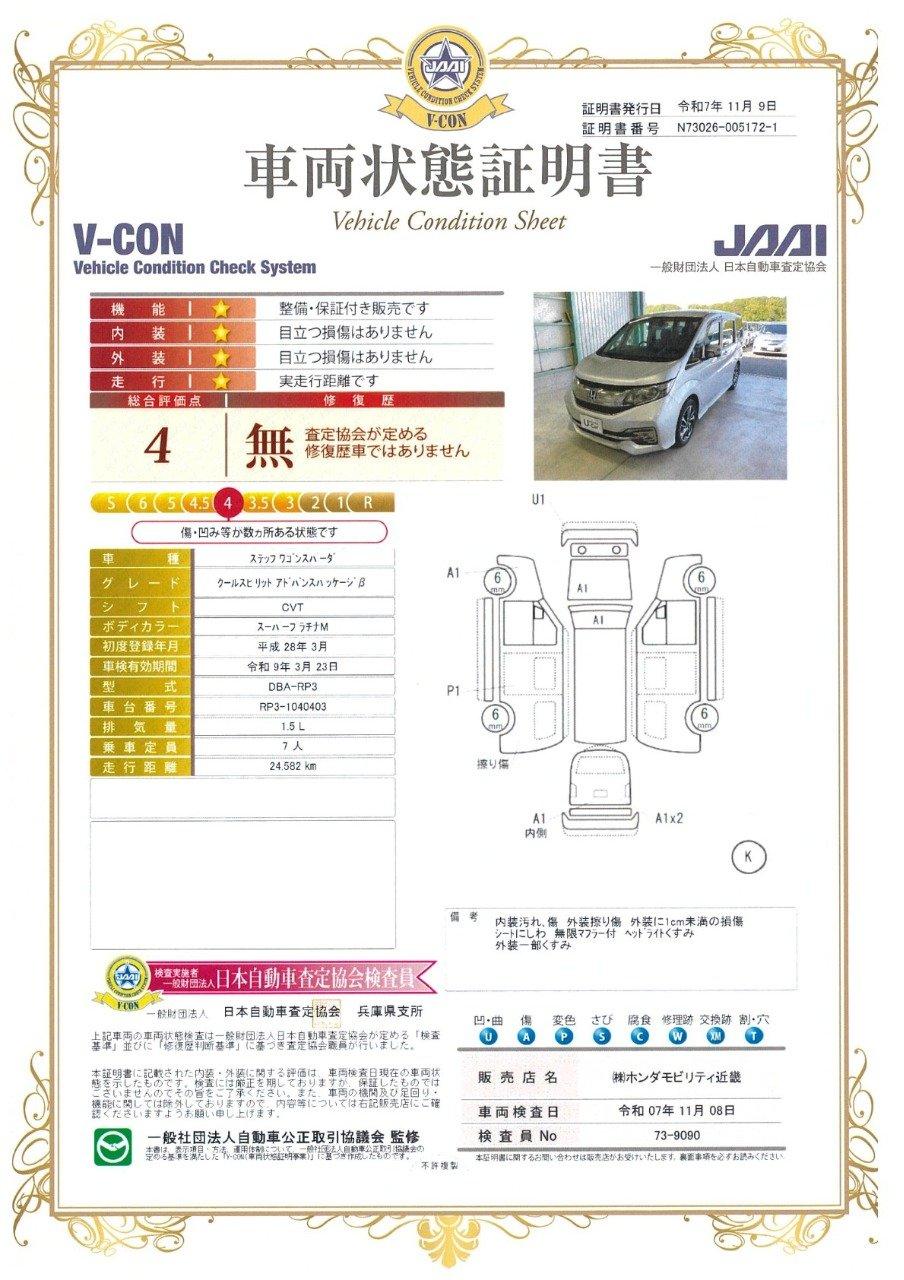 車両保証(ステップワゴンスパーダ スパーダクールスピリット アドバンスパッケージβ:ホンダカーズ兵庫 伊丹中央店U-Car (株)ホンダモビリティ近畿)