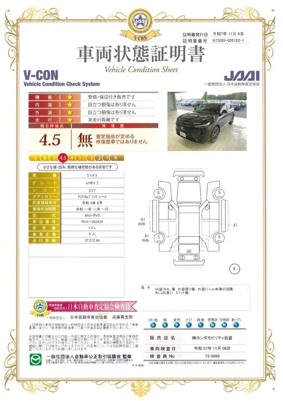 車両保証(ヴェゼル e:HEV Z:ホンダカーズ兵庫 伊丹中央店U-Car (株)ホンダモビリティ近畿)