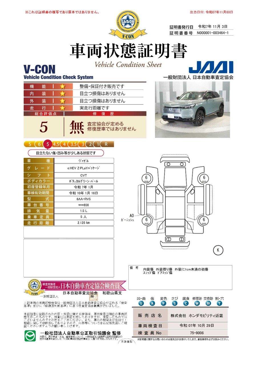 車両保証(ヴェゼル e:HEV Z・PLaYパッケージ:ホンダカーズ大阪 U-Select鳳 (株)ホンダモビリティ近畿)