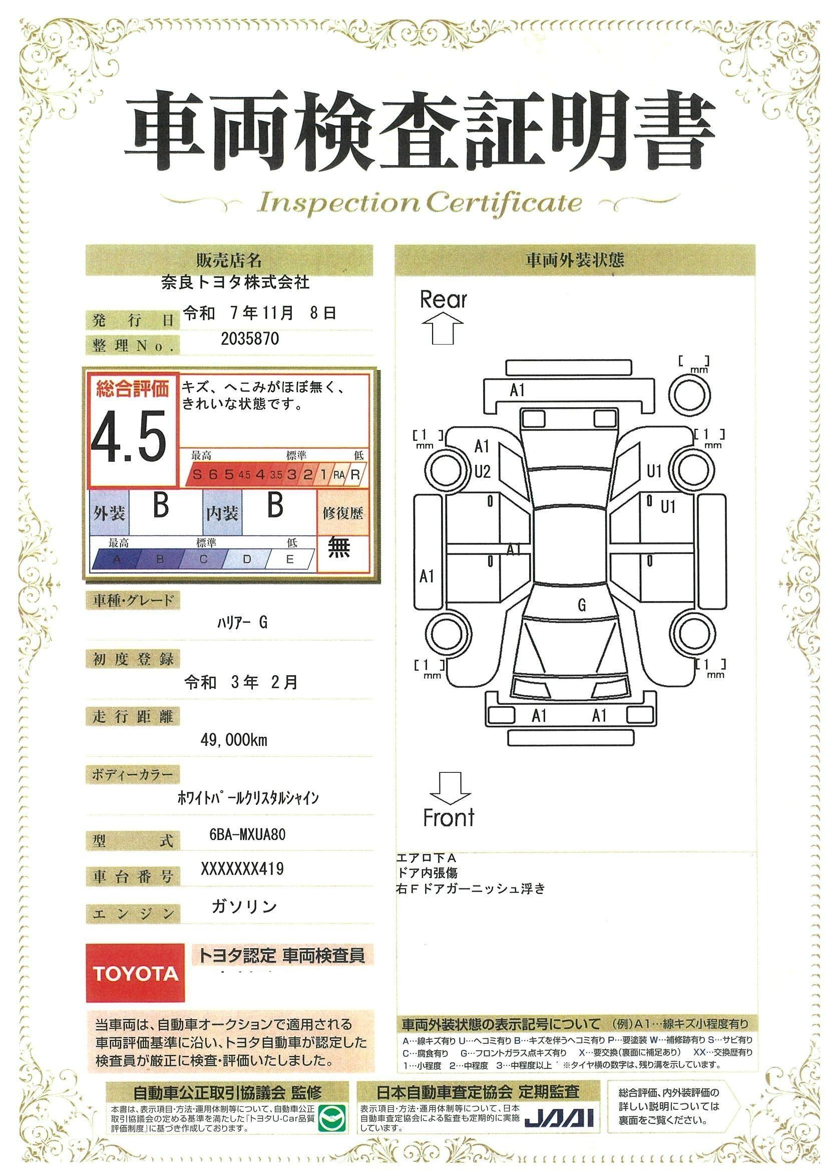 車両保証(ハリアー G:奈良トヨタ株式会社 モビリティガーデンRT香芝)