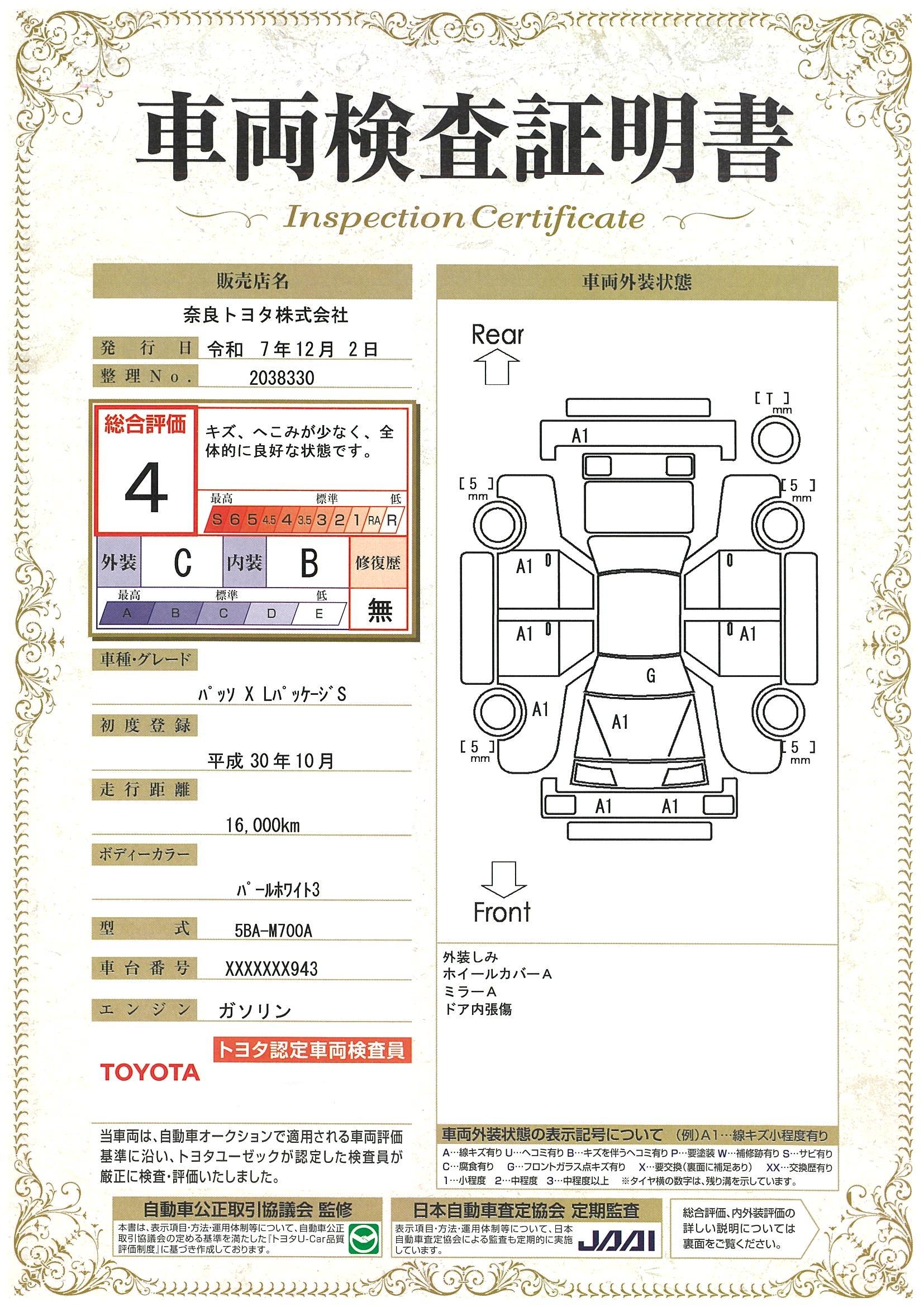 車両保証(パッソ X LパッケージS:奈良トヨタ株式会社 モビリティガーデンRT香芝)