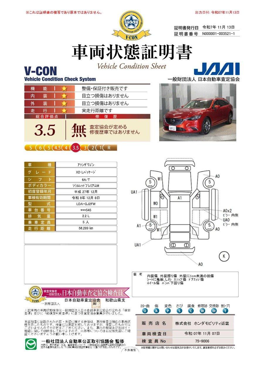 車両状態(アテンザワゴン XD Lパッケージ)