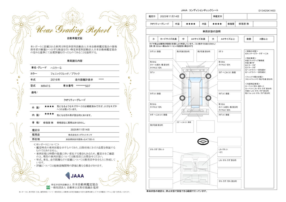 車両保証(ハスラー G:シマダオート 橿原店 (株)ホンダネットキンキ)