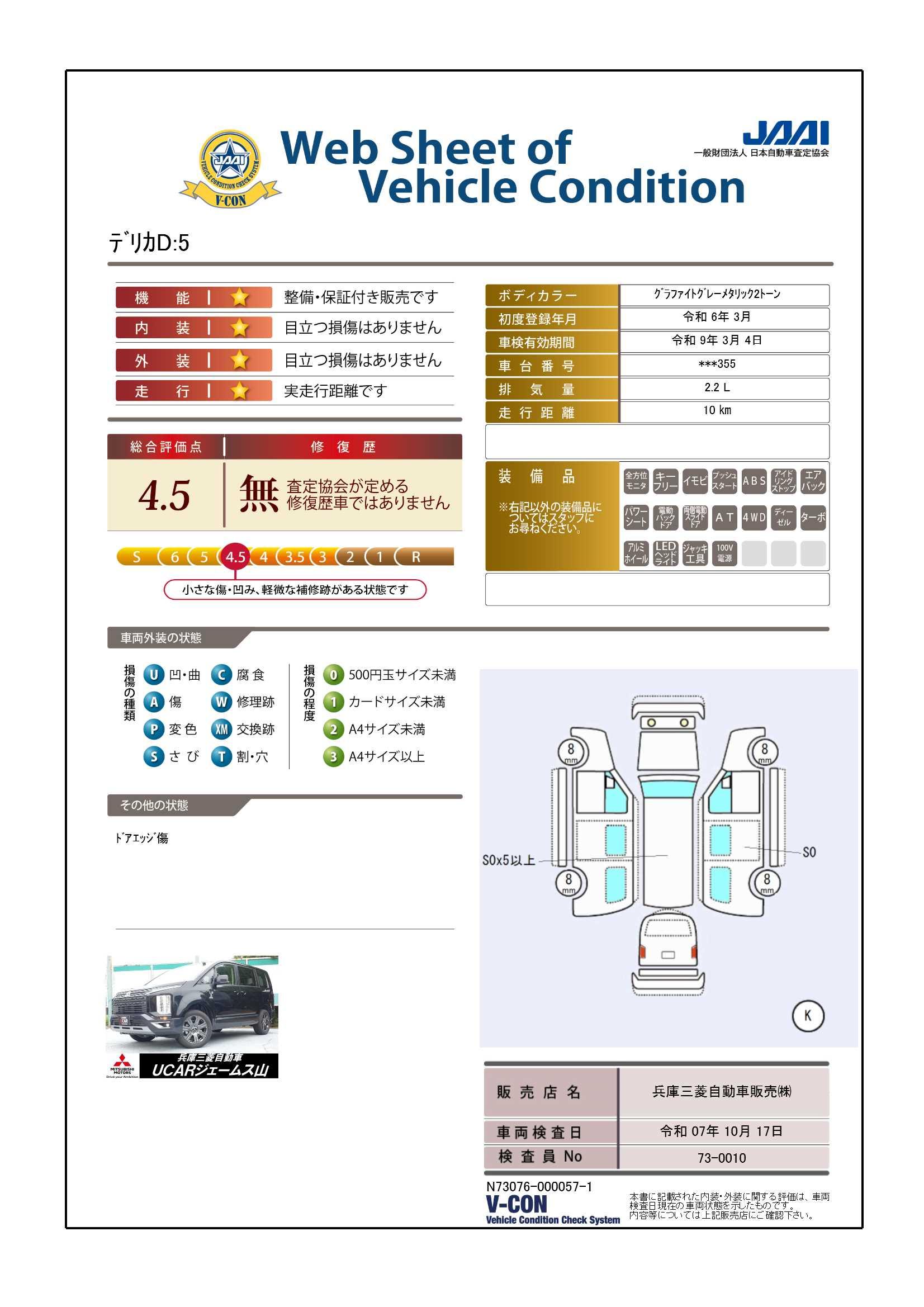 車両保証(デリカD:5 その他/独自仕様/表記なし:兵庫三菱自動車販売(株)UCARジェームス山)