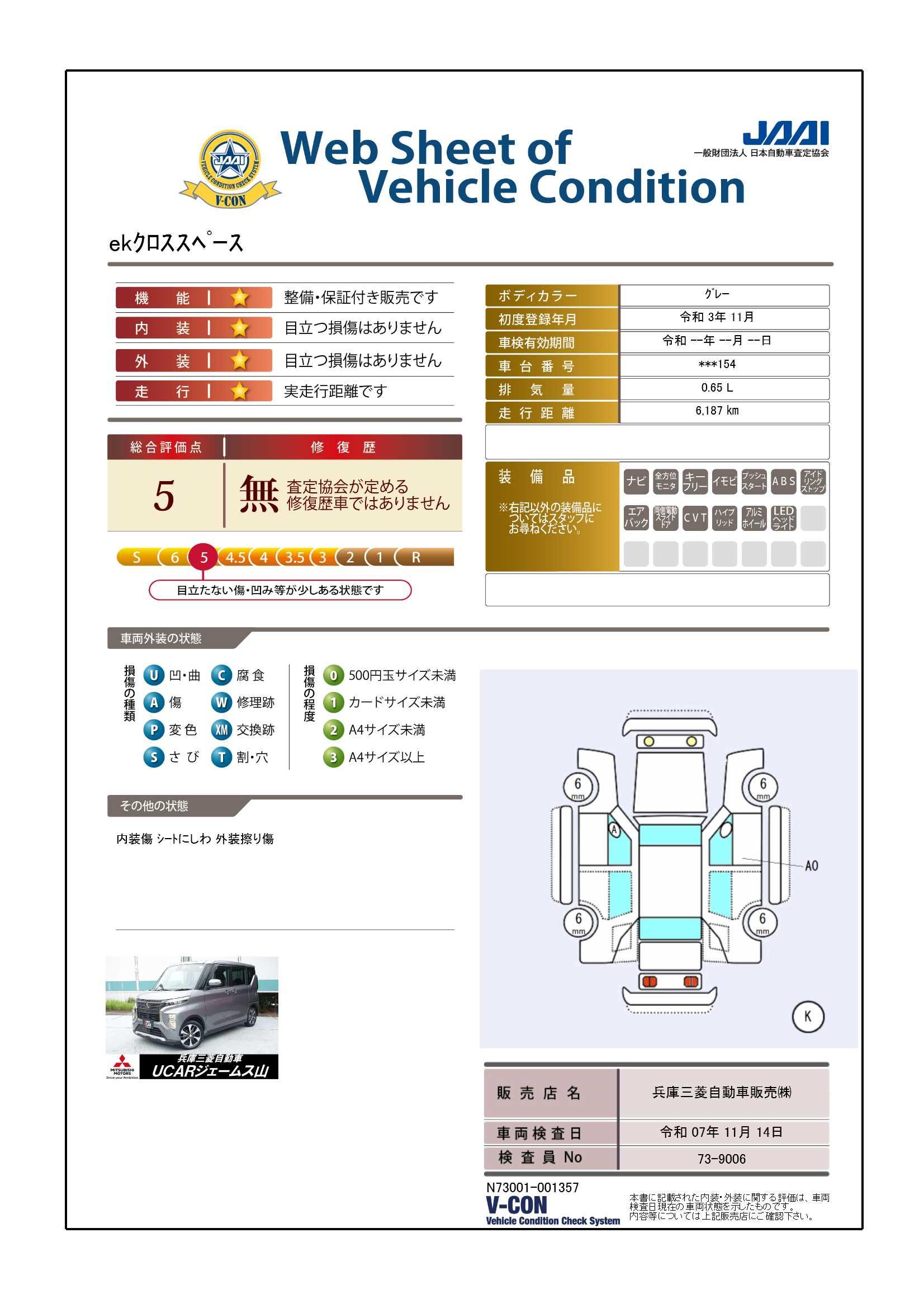 車両保証(eKクロススペース G プラスエディション:兵庫三菱自動車販売(株)UCARジェームス山)
