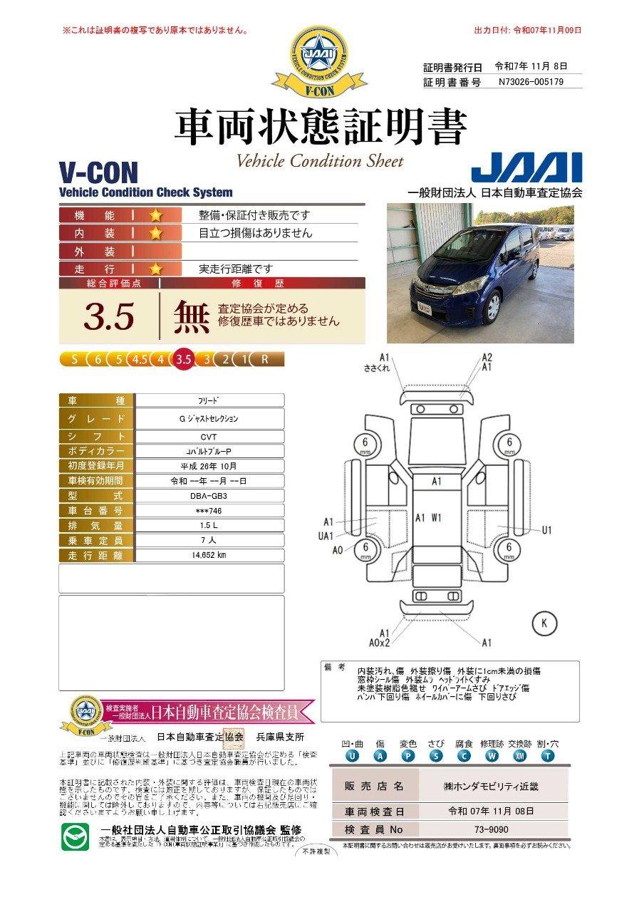 車両保証(フリード G ジャストセレクション:ホンダカーズ兵庫 U-Select明石 (株)ホンダモビリティ近畿)