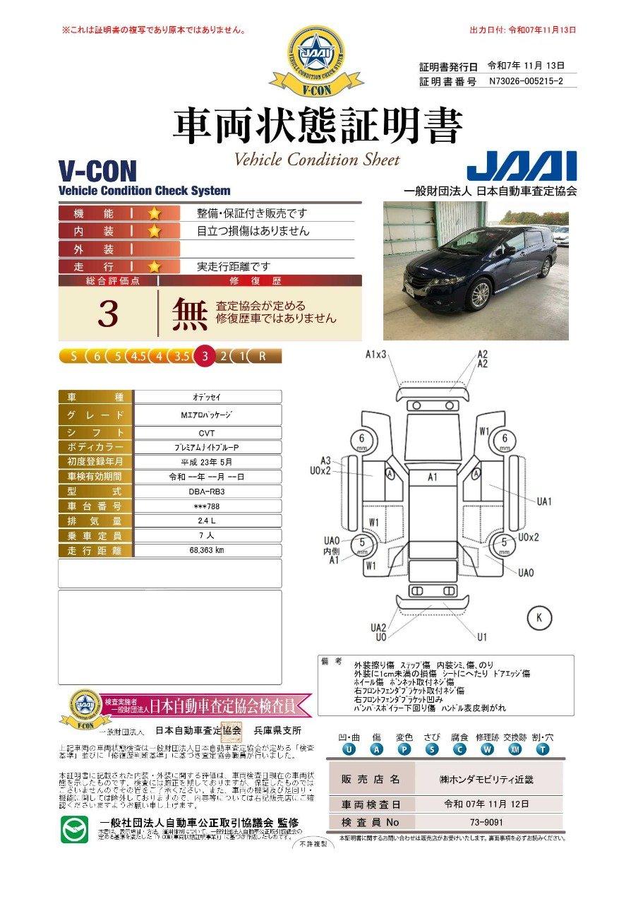 車両保証(オデッセイ Mエアロパッケージ:ホンダカーズ兵庫 U-Select明石 (株)ホンダモビリティ近畿)