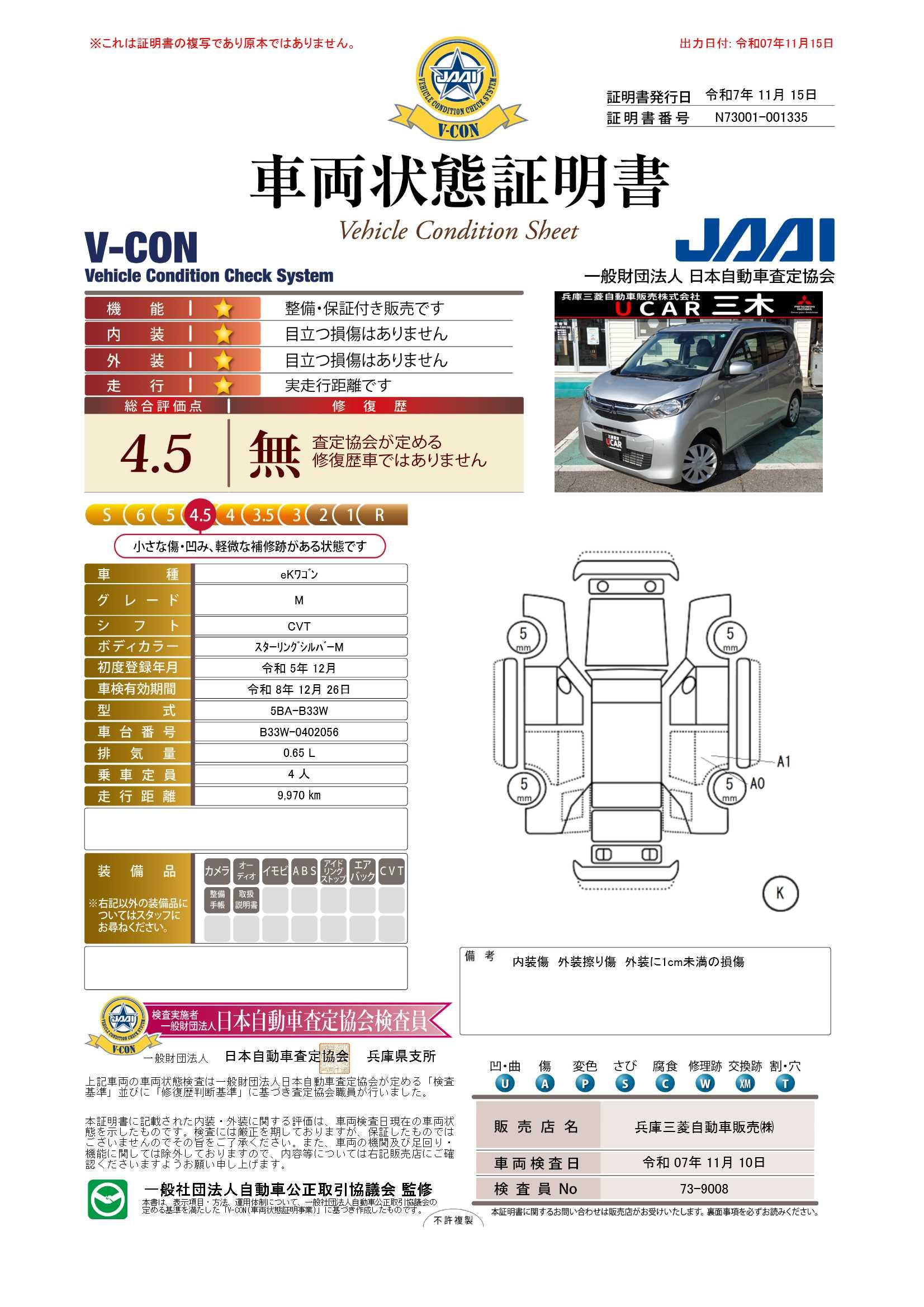 車両保証(eKワゴン M:兵庫三菱自動車販売(株)UCAR三木)