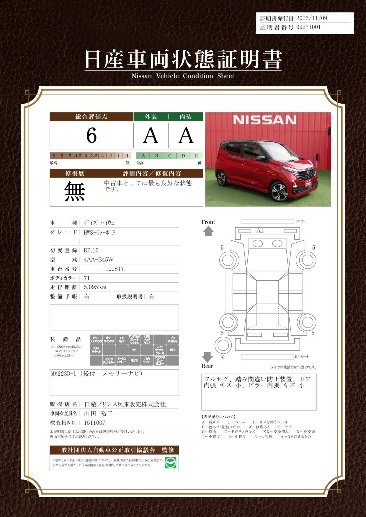 車両保証(デイズ ハイウェイスター Gターボプロパイロットエディション:日産プリンス兵庫販売(株)明石中古車センター)
