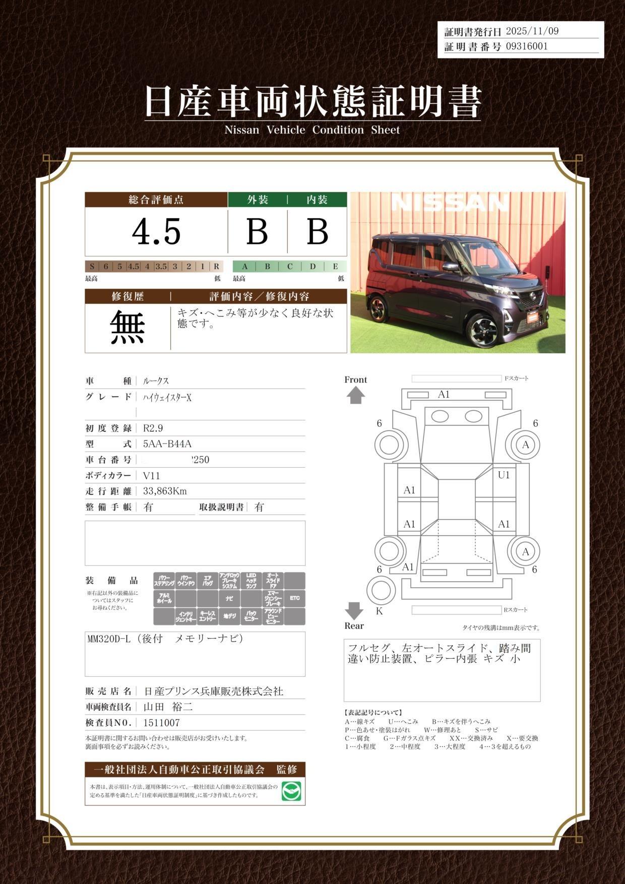 車両保証(ルークス ハイウェイスター X:日産プリンス兵庫販売(株)明石中古車センター)