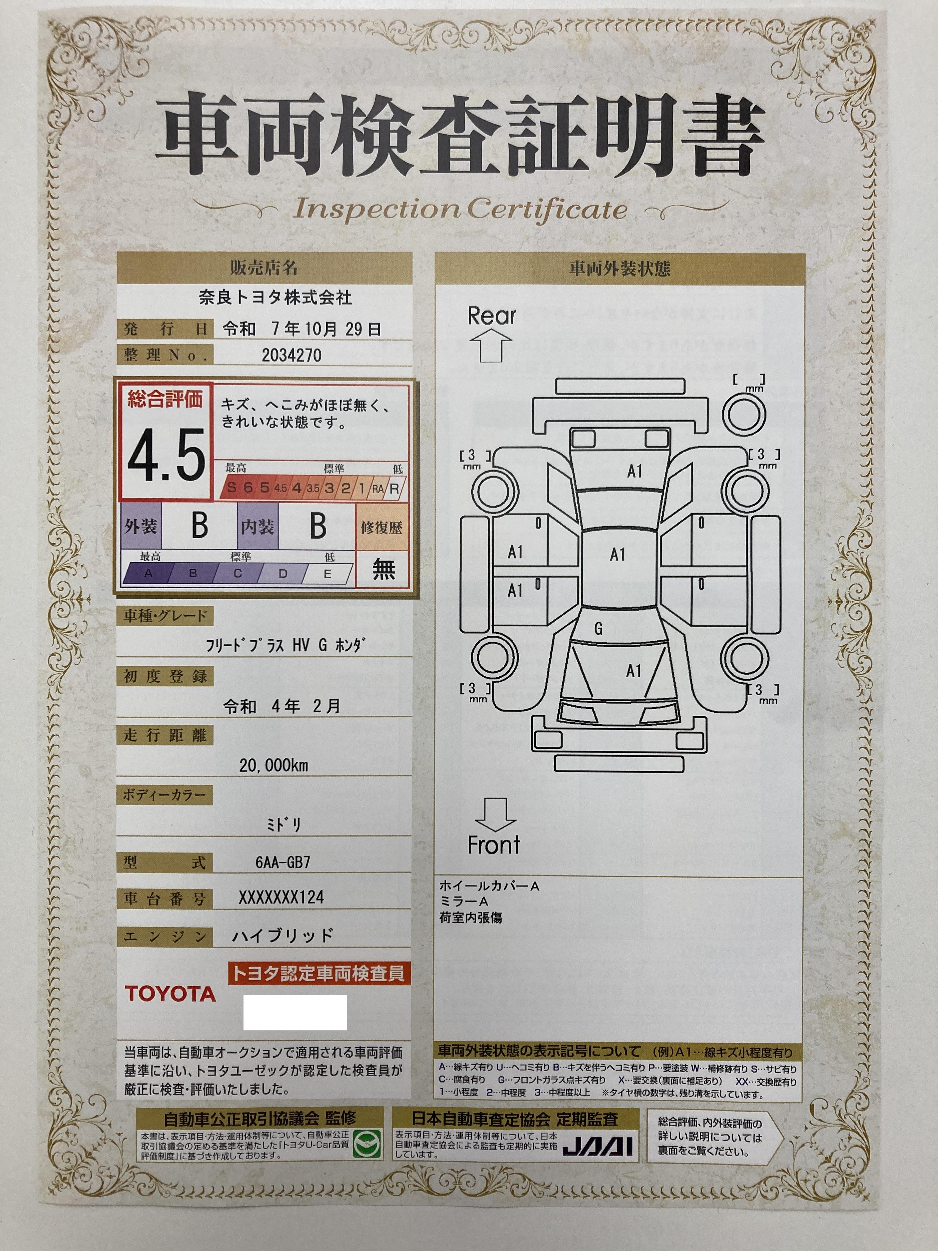 車両保証(フリード+ハイブリッド ハイブリッドG・ホンダセンシング:奈良トヨタ株式会社 U-Car葛城店)