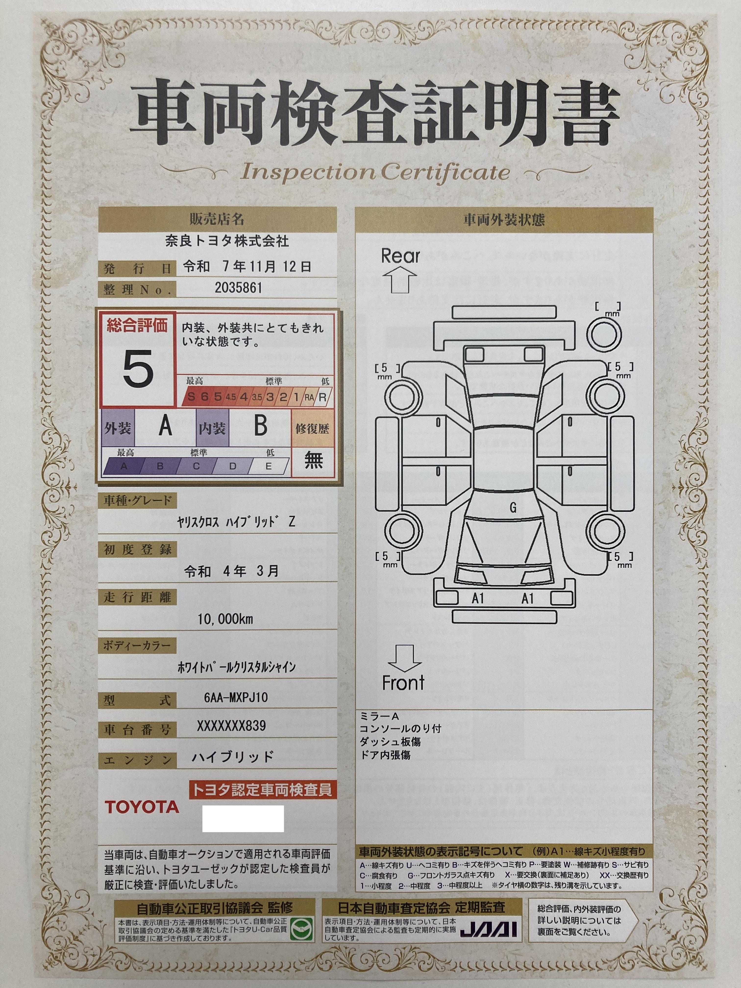 車両保証(ヤリスクロス ハイブリッドZ:奈良トヨタ株式会社 U-Car葛城店)