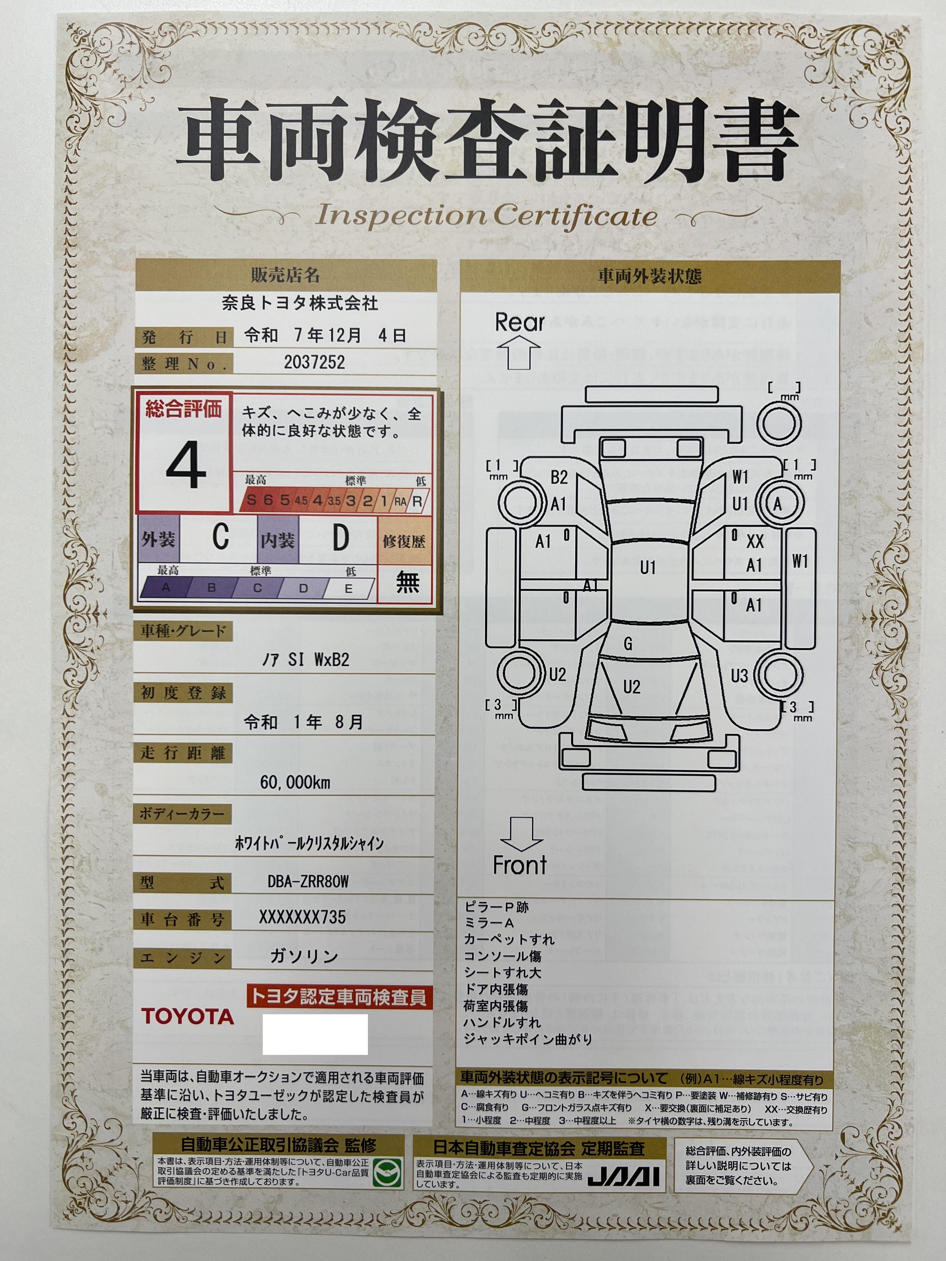 | 車両状態評価書 | ※クリックすると開きます![]() |